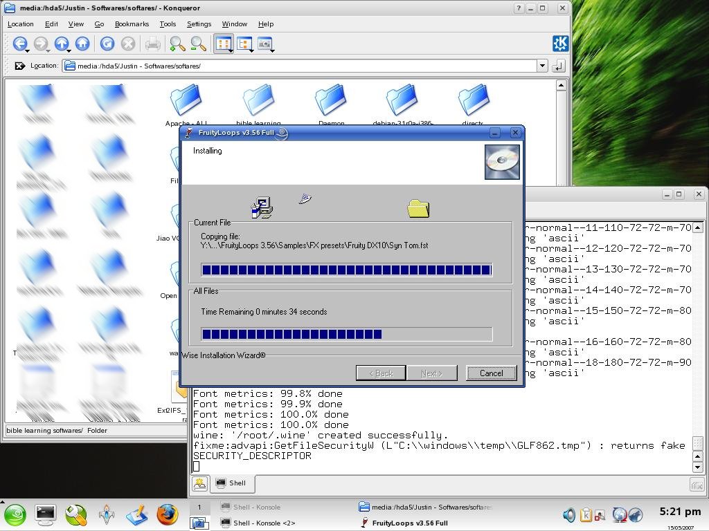 Below you can see the installation of fruity loops going smoothly, thanks to cool windows emulator WINE. Although Fruity Loops installations seemed to be ok and it worked almost fine, my quest for finding a fruity loops equivalent in the linux world is NOT going to slow down.