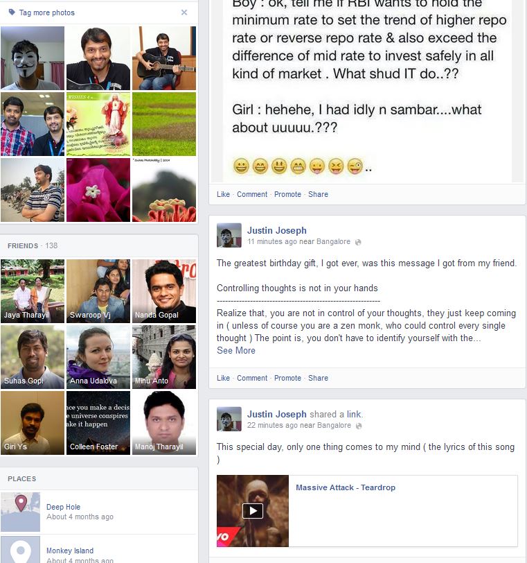 Page on Facebook By Justin Joseph | August 3, 2014 0 Comment This is how my facebook page looked on Jun 12, 2014 Share this:Click to share on Twitter (Opens in new window)Click to share on Facebook (Opens in new window)Like this:Like Loading... Related