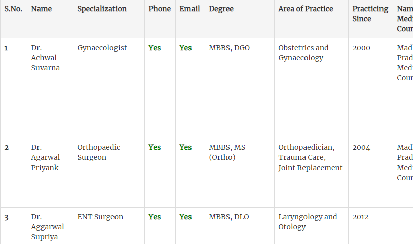 - NGO’s carrying out medical camps can use this database to understand the availability of doctors.